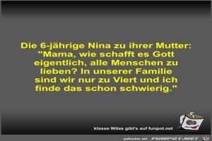 | Die 6-jährige Nina zu ihrer Mutter Bild (34.49 KB) 7Lustiges → klasse Sprüche und Witze | Lustiges → klasse Sprüche und Witze | 01.02.21-14:09 | Fossy | |