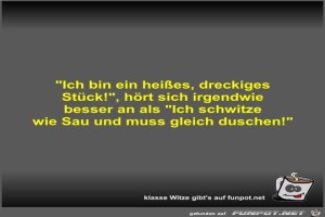 | "Ich bin ein heißes, dreckiges Stück!", hört sich irgendwie Bild (25.6 KB) 9Lustiges → klasse Sprüche und Witze | Lustiges → klasse Sprüche und Witze | 01.02.21-11:11 | Fossy | |