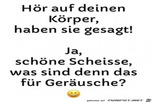 | Hoer auf deinen Koerper Bild (72.48 KB) 9Lustiges → klasse Sprüche und Witze | Lustiges → klasse Sprüche und Witze | 02.02.21-09:49 | Keule56 | |