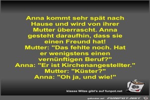| Anna kommt sehr spät nach Hause und wird von ihrer Mutter... Bild (46.43 KB) 7Lustiges → klasse Sprüche und Witze | Lustiges → klasse Sprüche und Witze | 30.01.21-14:46 | Fossy | |