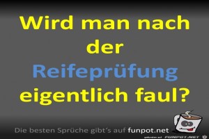| Nach der Reifeprüfung Bild (61.2 KB) 10Lustiges → klasse Sprüche und Witze Bei manchen trifft das mit der Faulheit nach der Reifeprüfung mit Sicherheit zu ;-) | Lustiges → klasse Sprüche und Witze | 27.01.21-11:23 | ||