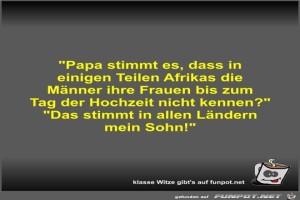 | Papa stimmt es, dass in einigen Teilen Afrikas die Männer Bild (32.34 KB) 4Lustiges → klasse Sprüche und Witze | Lustiges → klasse Sprüche und Witze | 28.01.21-08:02 | Fossy | |