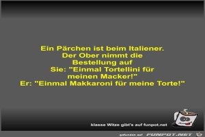 | Ein Pärchen ist beim Italiener Bild (26.58 KB) 8Lustiges → klasse Sprüche und Witze | Lustiges → klasse Sprüche und Witze | 21.01.21-10:54 | Fossy | |