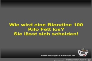 | Wie wird eine Blondine 100 Kilo Fett los? Bild (22.78 KB) 7Lustiges → klasse Sprüche und Witze | Lustiges → klasse Sprüche und Witze | 20.01.21-08:00 | Fossy | |