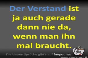 | Der Verstand Bild (70.37 KB) 17Lustiges → klasse Sprüche und Witze Manchmal ist es ja auch schön, dass der Verstand einem nicht immer einen Strich durch die Rechnung macht ;-) | Lustiges → klasse Sprüche und Witze | 16.01.21-08:54 | ||