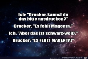 | Der Drucker piepst wenigstens Bild (60.74 KB) 18Lustiges → klasse Sprüche und Witze | Lustiges → klasse Sprüche und Witze | 18.01.21-08:21 | ||