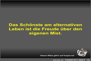 | Das Schönste am alternativen Leben ist die Freude über den Bild (22.47 KB) 7Lustiges → klasse Sprüche und Witze | Lustiges → klasse Sprüche und Witze | 17.01.21-08:30 | Fossy | |