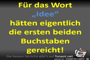 | Das Wort Idee Bild (57.07 KB) 13Lustiges → klasse Sprüche und Witze Da hätte man sich doch tatsächlich zwei Buchstaben sparen können! | Lustiges → klasse Sprüche und Witze | 07.01.21-17:26 | ||