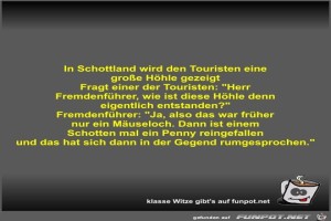 | In Schottland wird den Touristen eine große Höhle gezeigt Bild (36.4 KB) 13Lustiges → klasse Sprüche und Witze | Lustiges → klasse Sprüche und Witze | 08.01.21-14:06 | Fossy | |
