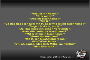 | Wie ist ihr Name? Bild (38.58 KB) 1Lustiges → klasse Sprüche und Witze | Lustiges → klasse Sprüche und Witze | 22.04.-14:04 | Fossy | |