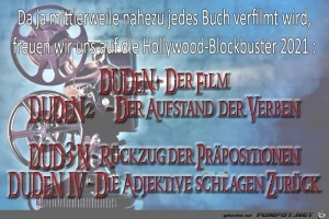 | Blockbuster 2021 Bild (114.5 KB) von Bonobo666 am 20. Dezember 2020 um 16:20 Uhr Lustiges → klasse Sprüche und Witze Die Filme habe einige nötig | Lustiges → klasse Sprüche und Witze | 20.12.20-16:20 | Bonobo666 | ||