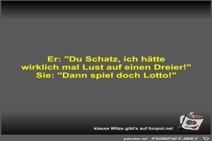 | Er: Du Schatz, ich hätte wirklich mal Lust auf einen... Bild (21.89 KB) 11Lustiges → klasse Sprüche und Witze | Lustiges → klasse Sprüche und Witze | 22.12.20-08:00 | Fossy | |