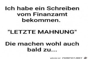 | Letzte Mahnung Bild (60.29 KB) 12Lustiges → klasse Sprüche und Witze | Lustiges → klasse Sprüche und Witze | 21.12.20-08:11 | Keule56 | |