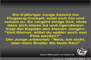 | Ein 6-jähriger Junge kommt ins Flugzeug-Cockpit Bild (52 KB) 10Lustiges → klasse Sprüche und Witze | Lustiges → klasse Sprüche und Witze | 02.12.20-13:22 | Fossy | |