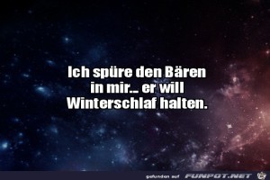 | Der Bär in mir Bild (43.56 KB) 17Lustiges → klasse Sprüche und Witze | Lustiges → klasse Sprüche und Witze | 01.12.20-13:55 | ||