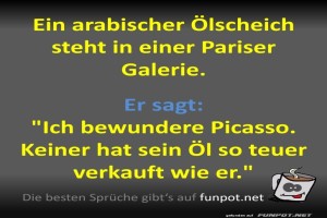 | Ölscheich bewundert Picasso in Galerie Bild (81.05 KB) 3Lustiges → klasse Sprüche und Witze Wenn du mal von einem Ölscheich finanziell bewundert wirst, hast du Großes erreicht ;-) | Lustiges → klasse Sprüche und Witze | 04.04.-10:33 | ||