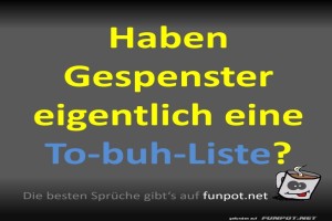 | Haben Gespenster eine To-buh-Liste? Bild (62.94 KB) 3Lustiges → klasse Sprüche und Witze Ich würde diese Frage mit einem klaren "Ja" beantworten. Logisch oder? ;-) | Lustiges → klasse Sprüche und Witze | 04.04.-10:33 | ||