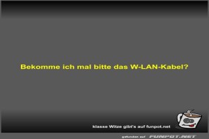 | Bekomme ich mal bitte das W-LAN-Kabel? Bild (14.3 KB) von Fossy am 18. März 2025 um 18:32 Uhr Lustiges → klasse Sprüche und Witze | Lustiges → klasse Sprüche und Witze | 18.03.-18:32 | Fossy | ||