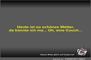 | Heute ist so schönes Wetter Bild (18 KB) 2Lustiges → klasse Sprüche und Witze | Lustiges → klasse Sprüche und Witze | 20.03.-09:53 | Fossy | |