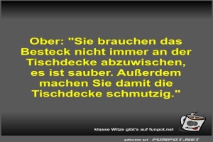 | Ober: Sie brauchen das Besteck nicht immer an der... Bild (38.42 KB) 1Lustiges → klasse Sprüche und Witze | Lustiges → klasse Sprüche und Witze | 19.03.-12:38 | Fossy | |