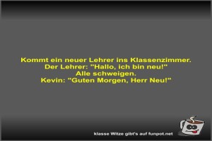 | Kommt ein neuer Lehrer ins Klassenzimmer Bild (21.98 KB) 1Lustiges → klasse Sprüche und Witze | Lustiges → klasse Sprüche und Witze | 29.09.-10:21 | Fossy | |