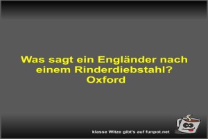 | Was sagt ein Engländer nach einem Rinderdiebstahl? Bild (20.82 KB) 1Lustiges → klasse Sprüche und Witze | Lustiges → klasse Sprüche und Witze | 30.09.-11:19 | Fossy | |
