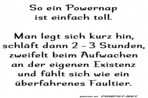| Powernap: Die Zeitreise zum Faultier! Bild (56.26 KB) 6Lustiges → klasse Sprüche und Witze | Lustiges → klasse Sprüche und Witze | 29.09.-09:00 | ||