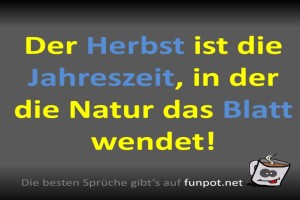 | Das Blatt wendet sich im Herbst Bild (66.74 KB) 5Lustiges → klasse Sprüche und Witze Das Blatt sollte sich nicht nur in der Natur wenden ;-) | Lustiges → klasse Sprüche und Witze | 30.09.-11:15 | Fossy | |