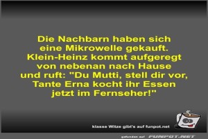 | Die Nachbarn haben sich eine Mikrowelle gekauft Bild (38.69 KB) 3Lustiges → klasse Sprüche und Witze | Lustiges → klasse Sprüche und Witze | 04.03.-17:23 | Fossy | |