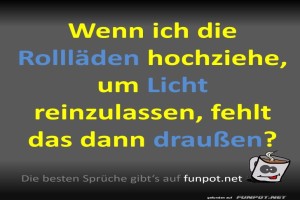 | Humor über Rolläden und Licht Bild (71.71 KB) 5Lustiges → klasse Sprüche und Witze Ich hoffe doch nicht, dass das Licht dann draußen fehlt ;-) | Lustiges → klasse Sprüche und Witze | 03.03.-10:33 | Fossy | |