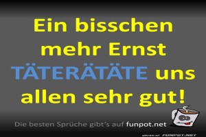 | Ein bisschen mehr Ernst täte uns gut Bild (69.4 KB) 4Lustiges → klasse Sprüche und Witze Heute am Faschingsdienstag sind wir noch nicht ernst. Das reicht dann ab morgen wieder ;-) | Lustiges → klasse Sprüche und Witze | 03.03.-10:33 | ||