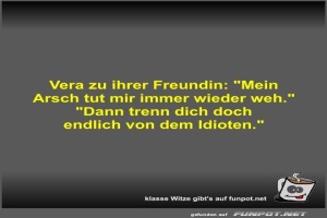 | Witz: Vera und die unerwünschte Beziehung Bild (24.98 KB) von Fossy am 03. März 2025 um 11:21 Uhr Lustiges → klasse Sprüche und Witze | Lustiges → klasse Sprüche und Witze | 03.03.-11:21 | Fossy | ||