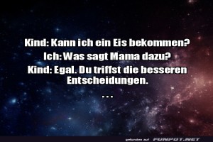 | Kind fragt nach Eis und die Antwort des Erwachsenen Bild (80.61 KB) 2Lustiges → klasse Sprüche und Witze | Lustiges → klasse Sprüche und Witze | 01.03.-10:47 | Celina93 | |