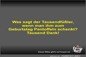 | Was sagt der Tausendfüßler Bild (24.86 KB) 2Lustiges → klasse Sprüche und Witze | Lustiges → klasse Sprüche und Witze | 28.02.-13:28 | Fossy | |