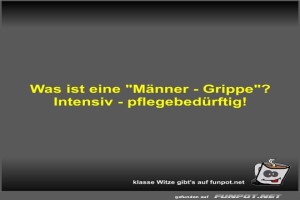 | Was ist eine "Männer - Grippe"? Bild (19.23 KB) von Fossy am 25. Februar 2025 um 11:14 Uhr Lustiges → klasse Sprüche und Witze | Lustiges → klasse Sprüche und Witze | 25.02.-11:14 | Fossy | ||