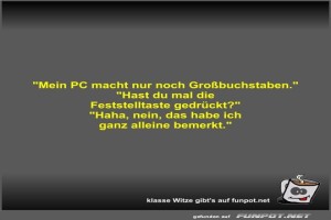 | Mein PC macht nur noch Großbuchstaben Bild (22.55 KB) 1Lustiges → klasse Sprüche und Witze | Lustiges → klasse Sprüche und Witze | 24.02.-17:51 | Fossy | |