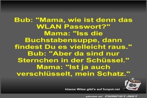 | Bub: Mama, wie ist denn das WLAN Passwort? Bild (46.41 KB) 3Lustiges → klasse Sprüche und Witze | Lustiges → klasse Sprüche und Witze | 25.02.-18:16 | Fossy | |
