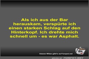 | Als ich aus der Bar herauskam Bild (31.8 KB) 2Lustiges → klasse Sprüche und Witze | Lustiges → klasse Sprüche und Witze | 25.02.-13:54 | Fossy | |