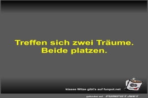 | Treffen sich zwei Träume Bild (18.68 KB) von Fossy am 19. Februar 2025 um 20:10 Uhr Lustiges → klasse Sprüche und Witze | Lustiges → klasse Sprüche und Witze | 19.02.-20:10 | Fossy | ||