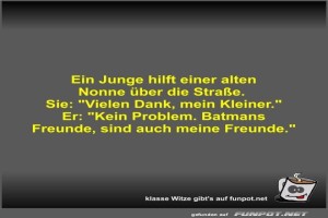 | Ein Junge hilft einer alten Nonne über die Straße Bild (28.65 KB) 3Lustiges → klasse Sprüche und Witze | Lustiges → klasse Sprüche und Witze | 21.02.-18:02 | Fossy | |