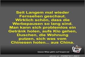| Seit Langem mal wieder Fernsehen geschaut Bild (46.83 KB) 6Lustiges → klasse Sprüche und Witze | Lustiges → klasse Sprüche und Witze | 09.01.-12:35 | Fossy | |