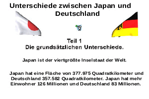 | Unterschiede zwischen Japan und Deutschland Teil 1 Powerpoint (9.21 MB) 49Lustiges → Wissenswertes Das ist mal wieder eine unheimlich interessante und lehrreiche Präsentation. Selbst wenn man nicht vor hat, in nächster Zeit mal nach Japan zu reisen, kann man hier sehr viel an Wissen mitnehmen. Viele der genannten Dinge würde ich mir für unser Land wünschen, was bei den Japanern selbstverständlich ist. | Lustiges → Wissenswertes | 15.05.-22:28 | lucky | |