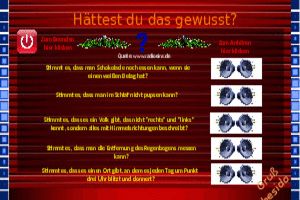 | Knifflige Fragen Nr. 13 Powerpoint (3.3 MB) 41Lustiges → Wissenswertes Ein weiterer Teil dieser coolen Präsentationen, in denen es um Trickfragen und geniale Wortspiele geht. | Lustiges → Wissenswertes | 11.05.-21:22 | lucky | |