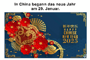 | In China beginnt das neue Jahr Powerpoint (8.6 MB) 63Lustiges → Wissenswertes Das Chinesische Neujahrsfest ist jedes Jahr an einem anderen Tag wie ich es gestern schon beschrieben hatte. Dieses Jahr ist es der 29. Januar. In dieser schönen Datei erfahrt ihr jetzt im Nachgang zu gestern noch ganz viele interessante Infos zu diesem besonderen Jahreswechsel. | Lustiges → Wissenswertes | 28.01.-19:36 | lucky | |