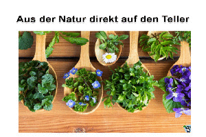 | Aus der Natur direkt auf den Teller Powerpoint (5.84 MB) 69Lustiges → Wissenswertes und Alltagstipps Wer sich für die Natur und gesunde Lebensmittel interessiert, wird diese Datei lieben. Man sollte wirklich viel mehr unterschiedlichen mit Kräutern etc. kochen, um neue Geschmackserlebnisse zu haben. Eine Freundin von uns hat mal eine Wildkräuterführung gemacht und war begeistert, aus was man alles einen leckeren Salat zaubern kann. | Lustiges → Wissenswertes und Alltagstipps | 12.06.22-21:54 | lucky | |