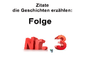 | 3. Beitrag Zitate, die Geschichten erzählen Powerpoint (11.2 MB) 39Lustiges → Wissenswertes → Redensarten Ein Zitat ist die wörtliche Wiederholung dessen, was schon einmal jemand gesagt oder aufgeschrieben hat. Dies ist die dritte Folge von "Zitate, die Geschichten erzählen". | Lustiges → Wissenswertes → Redensarten | 17.03.23-21:24 | lucky | |