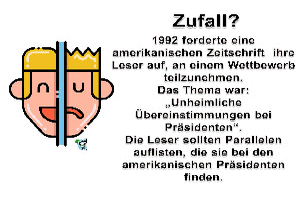 | Zufall? Powerpoint (9.02 MB) 47Lustiges → Wissenswertes Wenn man das so liest wie viele Parallelen es zwischen Lincoln und Kennedy gab, kommt man schon ins Zweifeln, ob das alles Zufall ist. Auf jeden Fall ist das mal wieder hochinteressant. | Lustiges → Wissenswertes | 21.03.23-20:43 | lucky | |