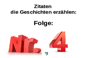 | 4. Beitrag Zitate die Geschichten erzählen Powerpoint (10.38 MB) 39Lustiges → Wissenswertes → Redensarten Ein Zitat ist die wörtliche Wiederholung dessen, was schon einmal jemand gesagt oder aufgeschrieben hat. Dies ist die vierte Folge von "Zitate, die Geschichten erzählen". | Lustiges → Wissenswertes → Redensarten | 31.03.23-21:52 | lucky | |