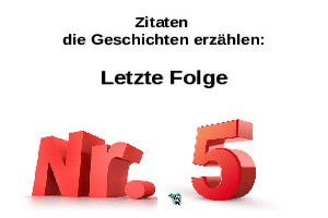 | 5. Beitrag Zitaten die Geschichten erzählen Powerpoint (10.24 MB) 47Lustiges → Wissenswertes → Redensarten Ein Zitat ist die wörtliche Wiederholung dessen, was schon einmal jemand gesagt oder aufgeschrieben hat. Dies ist die fünfte Folge von "Zitate, die Geschichten erzählen". | Lustiges → Wissenswertes → Redensarten | 31.03.23-21:52 | ||