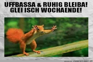 | Ruhig bleiben - gleich ist Wochenende Bild (87.7 KB) 14Lustiges → witzige Bilder und Mit Tieren | Lustiges → witzige Bilder und Mit Tieren | 01.04.21-13:10 | DunklesBrot | |